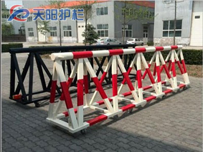 拒马临时护栏用途: 道路路口,安检大门,赛场出口,入口,此产品满足大型活动通道,体育赛事隔离,安检口蛇形通道,临时隔离通道等。应当具有较好的整体强度和耐冲击以及防攀越、防拆卸、防破坏能力。主要在音乐会,大型演出环境用于控制人群通道,隔离区域或者保护重要人物或设备,还适用在大型的专业旅游,大型活动等方面。主要充当临时护栏作用。与旧式铁马护栏相比,牢固性更强,防撞防推倒,单张可承受3个成年人推力不倒 特征:拆装方便,不破坏地面,方便运输,防锈能力好造型美观实用。多为预先制作,临时设置。它具有制作简单、运输方便,设置迅速等特点。